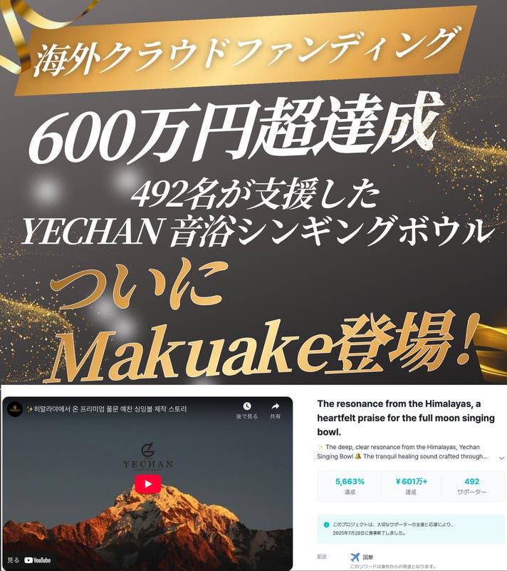 「Makuake(マクアケ)」は、実行者の想いを応援購入によって実現するアタラシイものやサービスのプラットフォームです。このページは、 プロダクトカテゴリの 「思考を手放す、1日15分の「音浴習慣」 | YECHAN 音浴シンギングボウル」プロジェクト詳細ページです。