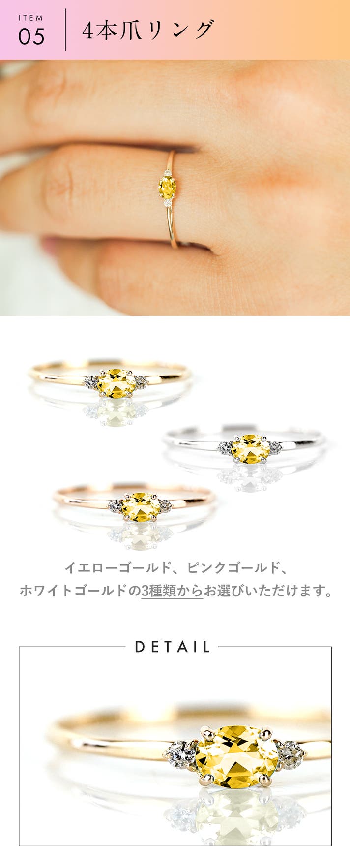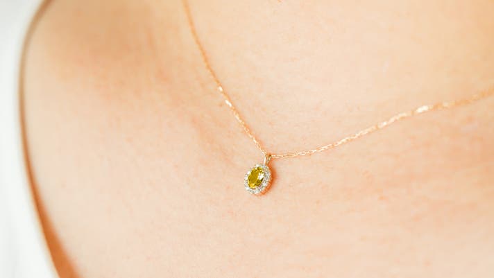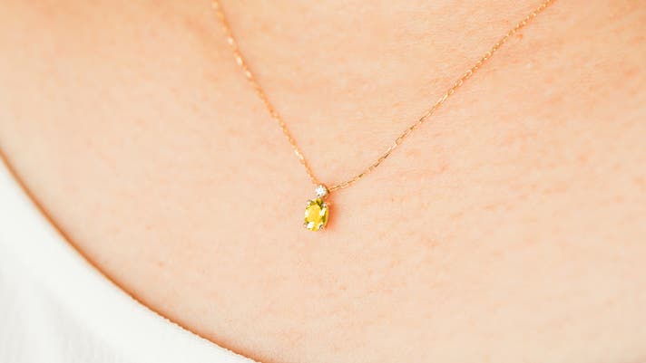 透明感のあるイエローカラーの宝石は、ギラギラと主張しすぎることのない品のある色彩で輝くので、ジュエリーにすると非常に肌に馴染みながら柔らかく煌めきます。