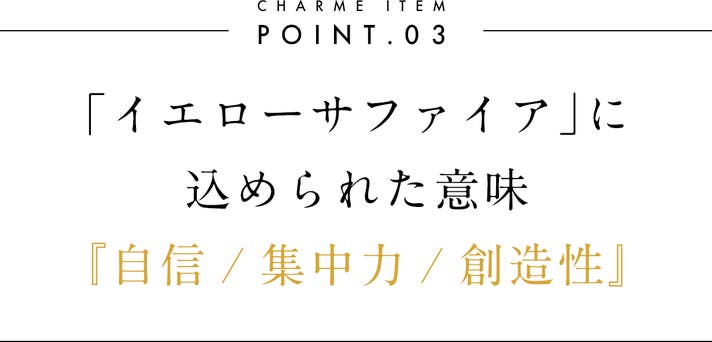 宝石はみな固有の石言葉を持っていて、イエローサファイアは、『自信』『集中力』『創造性』という素敵な意味を宿しています。