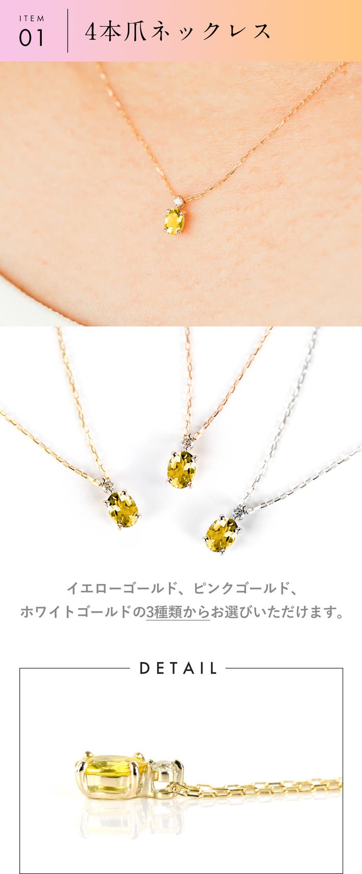 【超早割】イエローサファイア 10金 4本爪ネックレス n1