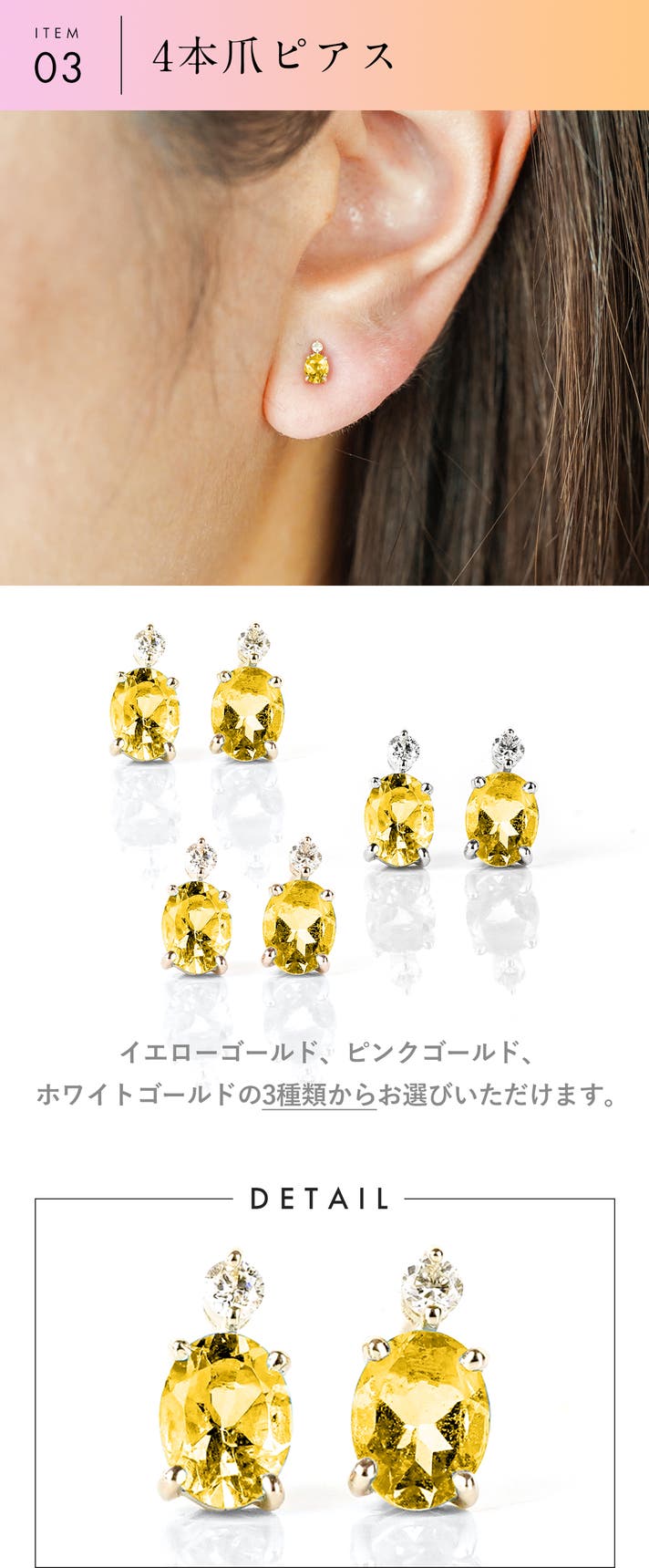 【Makuake価格】イエローサファイア 10金 4本爪アメリカンピアス p2