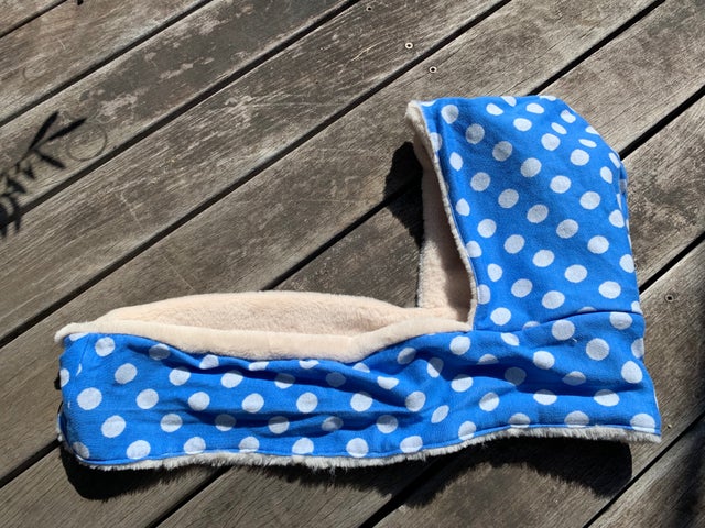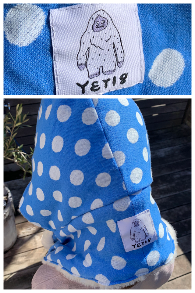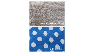 完成した製品1点【ライトベージュ(ボア)と水玉(ニット)】