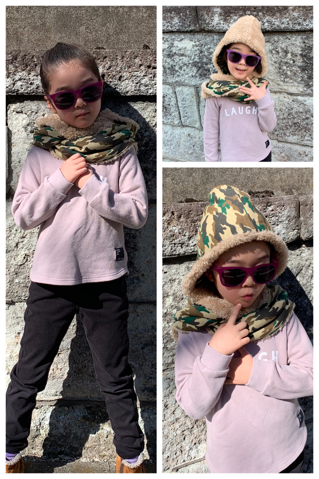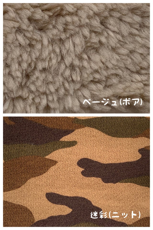 ②表:ベージュ(ボア)/裏:迷彩(ニット)