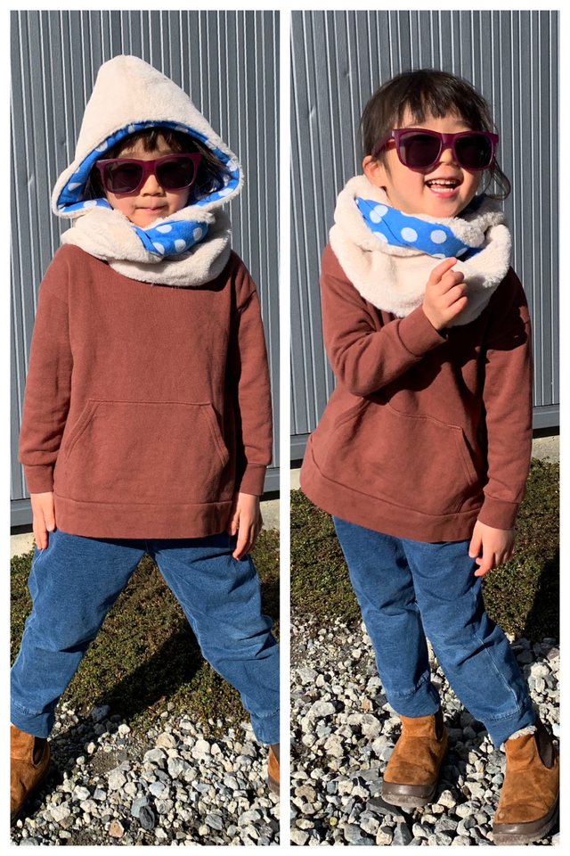 フードを下ろしたり、マフラーをめくってツートンにしたり