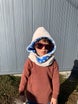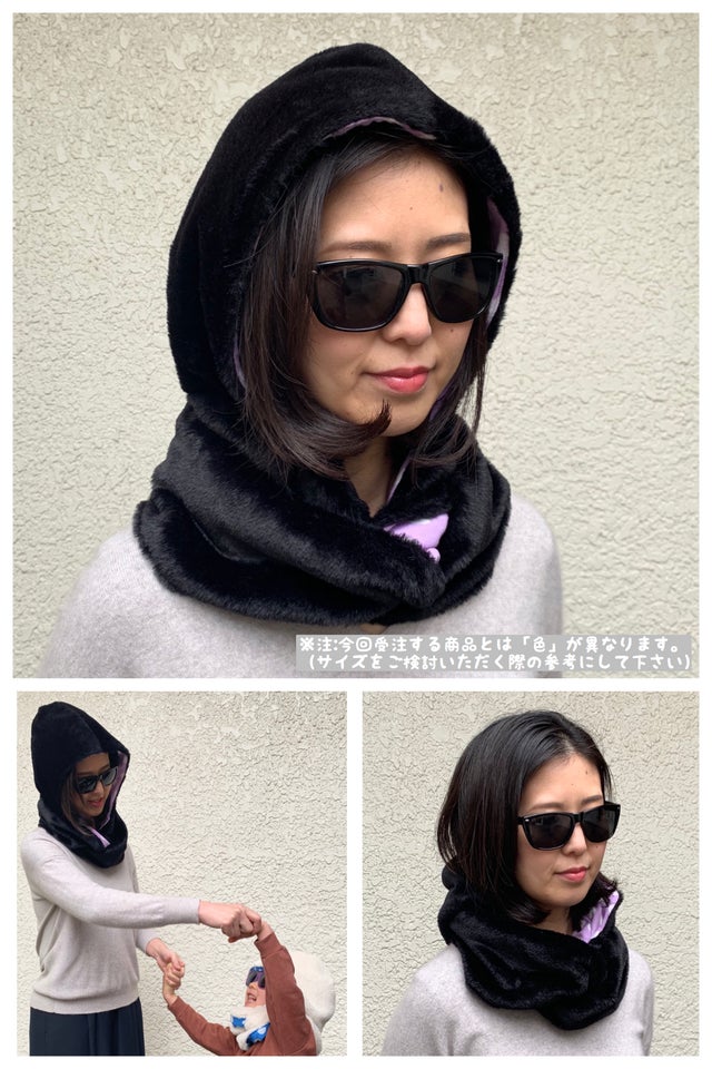 - 帽子、耳当て、マフラーの3機能がオールインワン!ネック部分のバンドをねじって被る新しさ!!