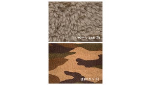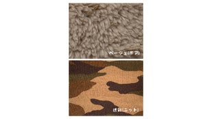完成した製品1点【ベージュ(ボア)と迷彩(ニット)】