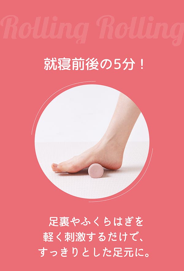 一日の終わりにソファでゆったりくつろぎながら、足元にフットローラーを置いて軽くコロコロ転がすだけ! 朝起きて脚がむくんで重く感じるときも、ベッドのふちに座って足裏全体をやさしくコロコロ…