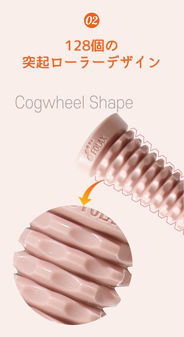 交互に配置された歯車のような形状が回転しながら足裏全体をまんべんなく刺激し、スッキリとした爽快感が脚に伝わります。
