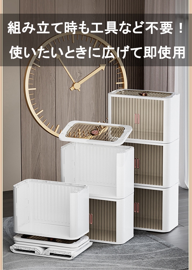 - 透明ドアで中身が見えやすく、2方向開閉で上からも前からもモノの出し入れがスムーズ!