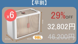 【超早割】【32%OFF 先着50名限定】98L折り畳み収納ボックス×6
