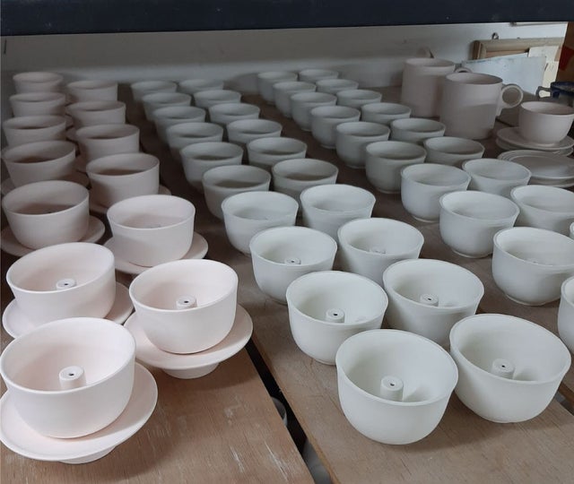 多数の陶磁器工房を訪問し、数回のサンプルテストを経て高いレベルの製作技術を持つ陶芸家により作られることとなりました。