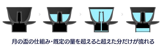 - 一定の量を超えると、超えた分が流れてこぼれるような設計!
