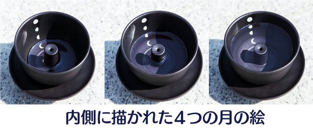 そして盃の中には月の満ち欠けの絵が見え、盃の下には茶托があります。