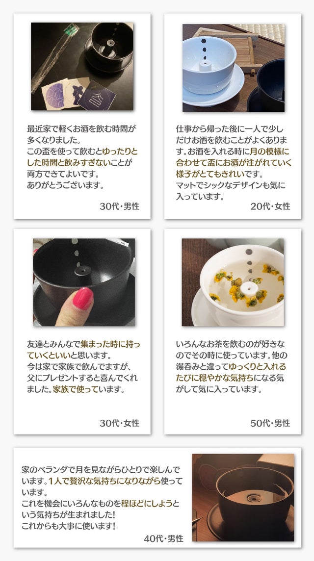満たすことが習慣になってしまった私たちに少しだけ『余白の美しさ』を感じる心が必要なのではと感じ、皆様にその感覚を共感していただけたらと思い月の盃を作りました。