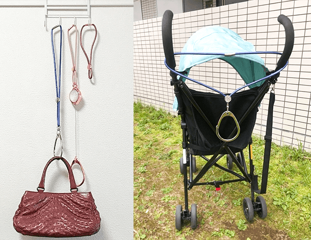 7キロの重さまで耐えられる強度があり、カラビナで荷物を固定できるので取り付けが楽で、とても機能的です。