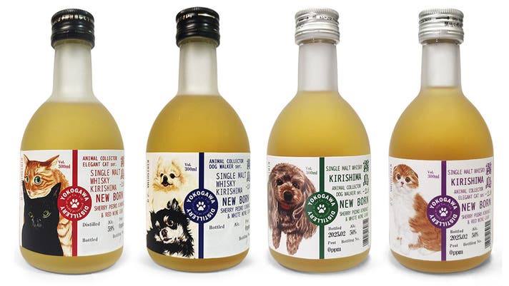 霧島横川蒸留所のスタッフには犬好き、猫好きが多く、飼っている犬や、飼ってみたい猫などをイメージしてラベルに載せました。