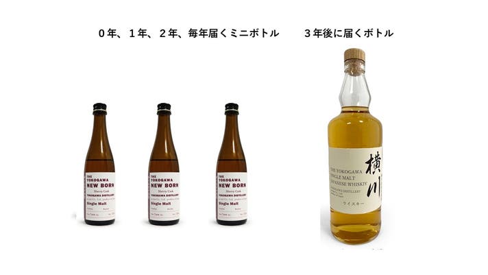 霧島横川蒸留所は、新サービス「3年間毎年届く”サブスクウイスキー”」を開始します。ご注文初年に樽熟成前の原酒100MLのミニボトル1本をお届けし、1年後、2年後にもそれぞれ100MLのミニボトルを1本をお届けします。そして、3年後に熟成したウイスキーをお届けするサービスです。熟成前の原酒が、熟成を経てウイスキーになる過程をお楽しみいただけるサービスです。