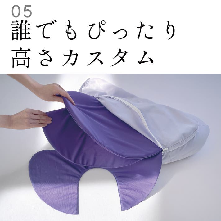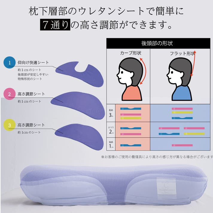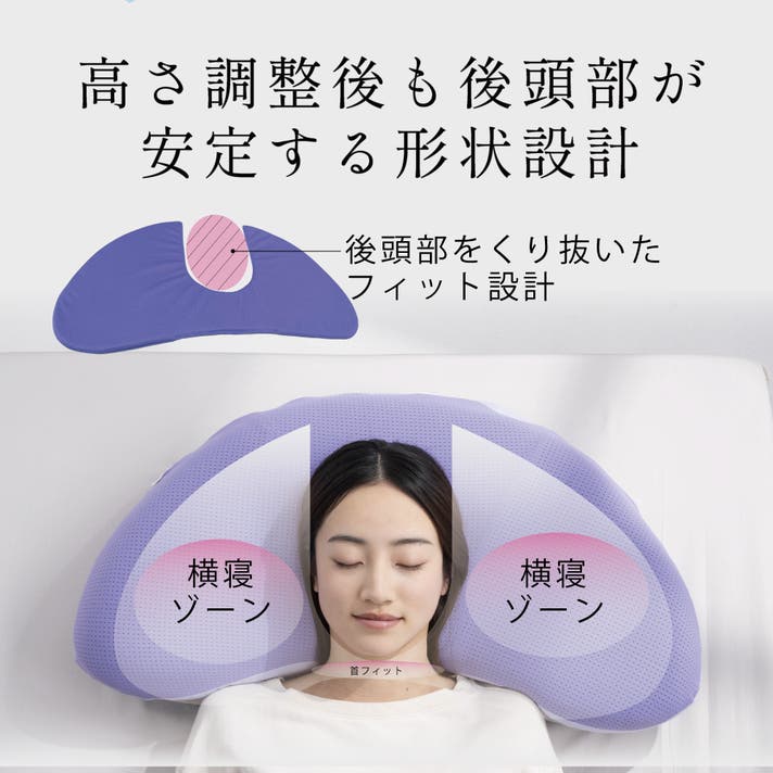 中央部分は少し低めに設定しているので、横寝でも仰向け寝でも快適な高さです。