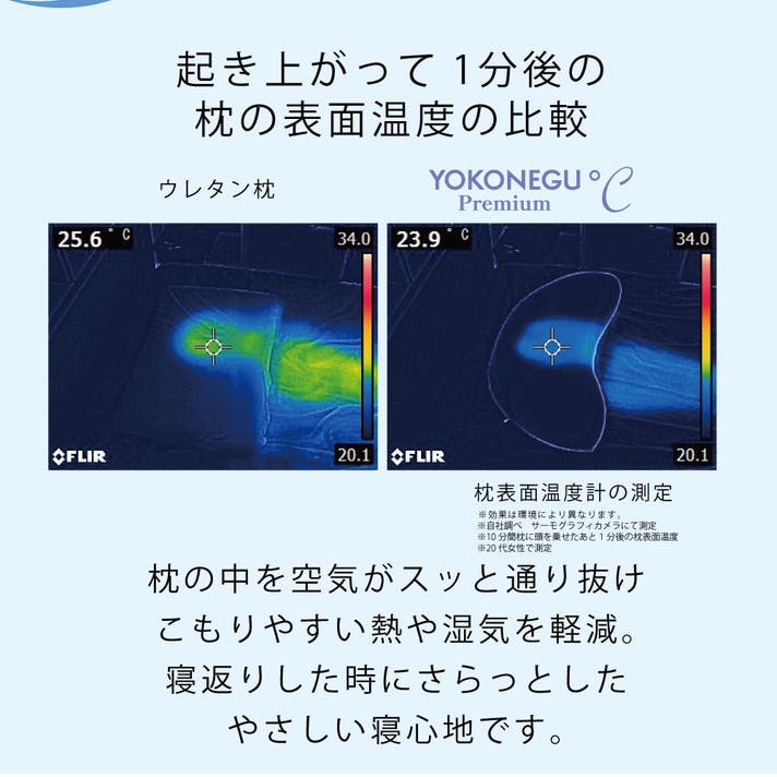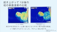 YOKONEGUシリーズで初めて PCM配合ウレタン〈PCMレイヤーフォーム〉 を採用し、さらにサーモカメラを用いた熱はけの測定など、新しい素材・新しい検証方法に挑戦しながら開発しました。