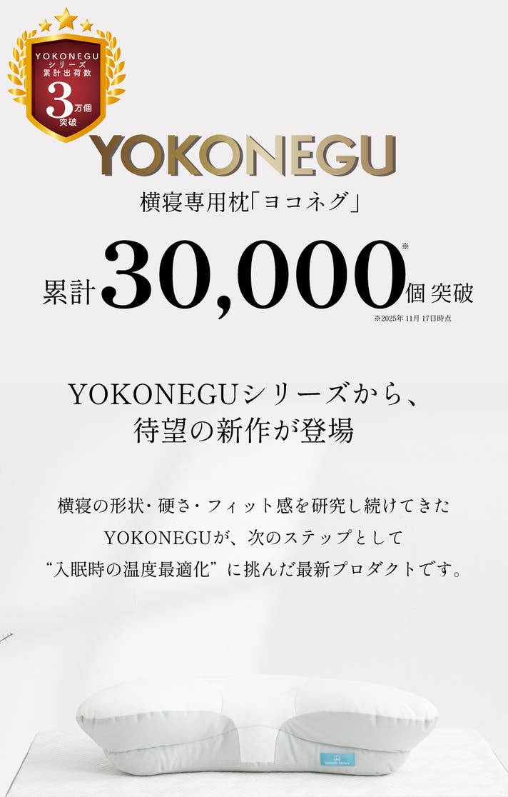 - シリーズ累計3万個以上販売した横寝専用枕YOKONEGU(ヨコネグ)から生まれた最新作!