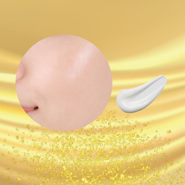 乳白色のクリームをお顔全体に伸ばすと自然な肌の色と共に