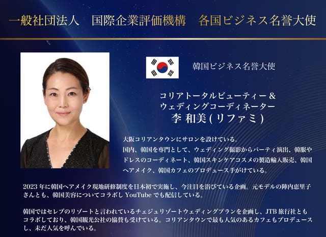 韓国トータルビューティー美容家でありウェディングプロデューサーです