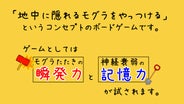 - モグラたたきに必要な瞬発力と、神経衰弱のような記憶力のふたつで競うゲームです!