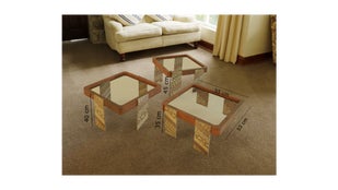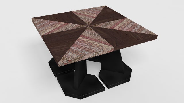 寄木の約40センチ四方のコーヒーテーブルを4つ組み合わせて80センチ四方のリビングテーブルとしてもお使い頂けます。