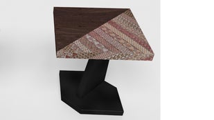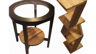 何気ないサイドテーブルやシェルフも、一枚の板に寄木細工が貼られるだけでインテリアのアクセントになります。天然素材の木材の繊維の美しさは画像では完全に表せません。