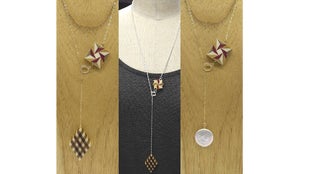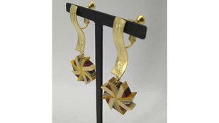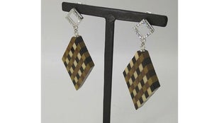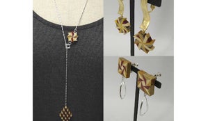 寄木ロングネックレス1個と、ピアリング1組のセット