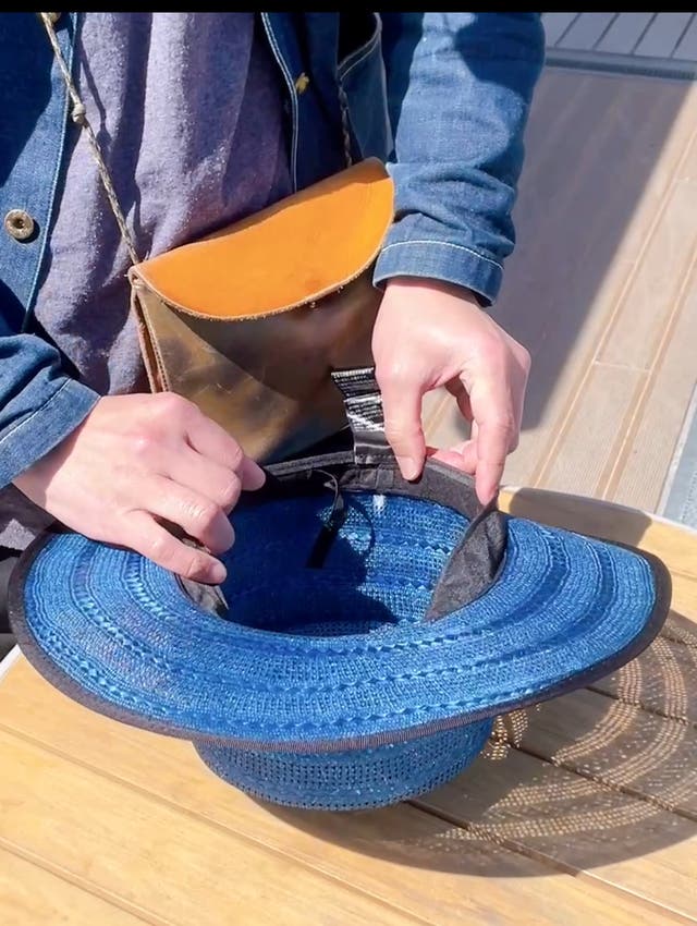ブリム(つば先)に形状記憶の樹脂を入れているので上げたり下げたり、ブリムの角度を変えたりと変幻自在!
