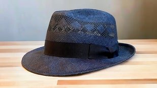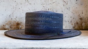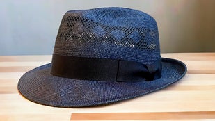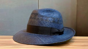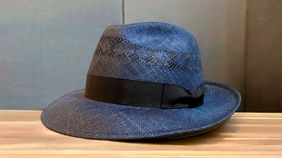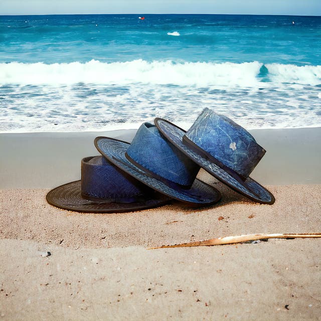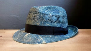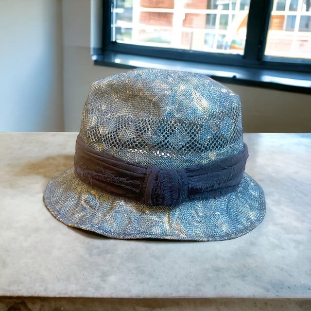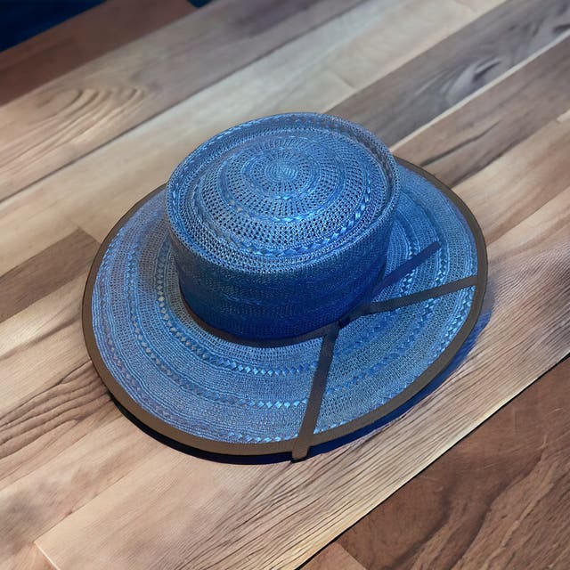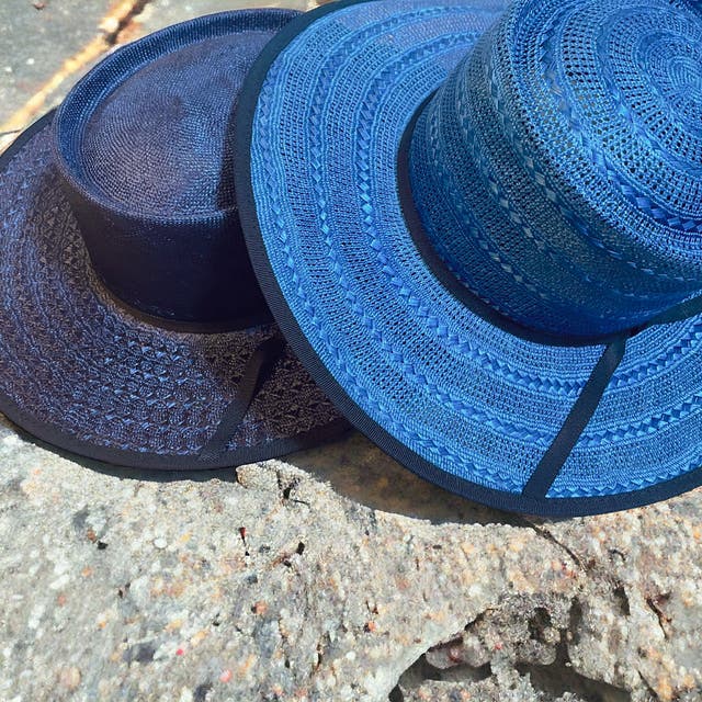 マニラ麻を裂いて石目又はアジロ編みにした帽体です。純白に漂白出来 る為、染色の自由度が高い素材です。