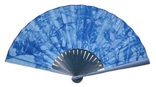 伝統染色/(武州壷藍染®️、奄美大島泥染、京都紋付黒染)×革新的技術(皮革の仕上げ)×匠技(京扇子)を融合させた京扇子は、ご愛用いただく程に経年変化が生まれ、表情が豊かになって行きます。