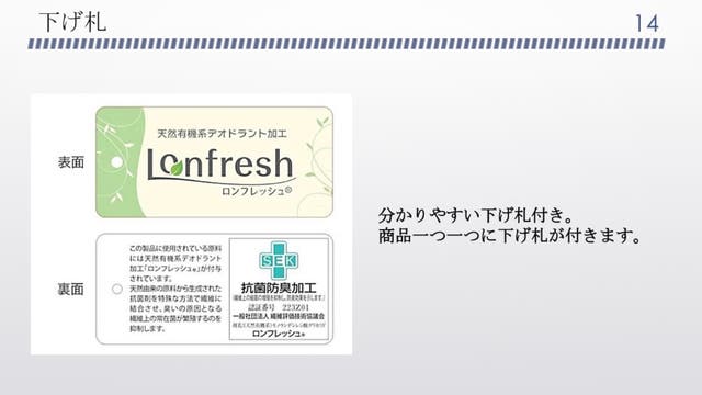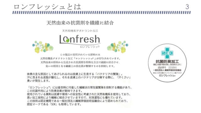 - 本藍染の効果効能に加え、抗菌・防臭効果を持つロンフレッシュニットを使用