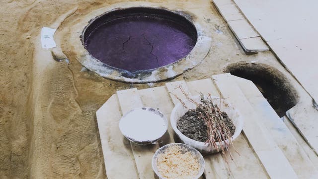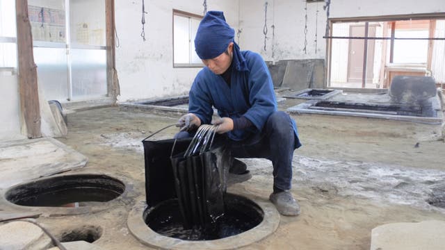 今尚、中島紺屋では手間暇を惜しまず、すくも藍と灰汁を使った「灰汁発酵建て」を実直に行っています。