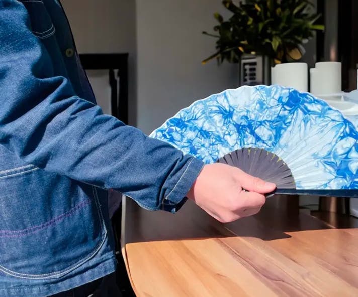 量産用藍染染色加工及び扇子用仕上げ加工