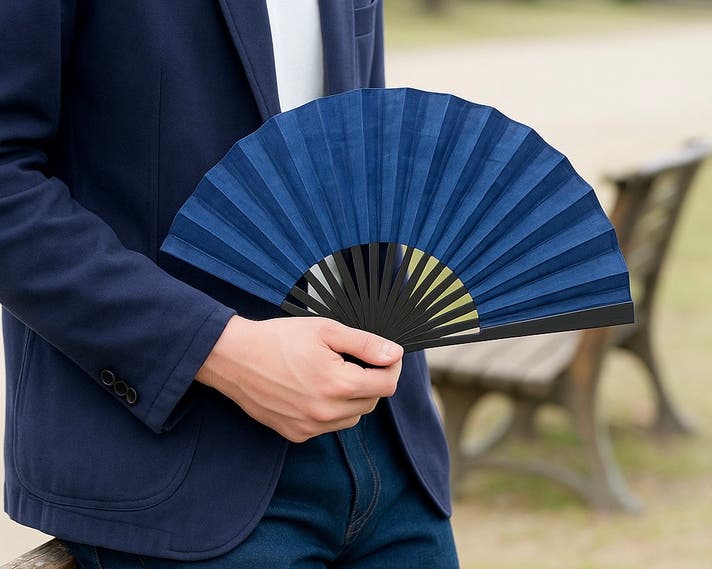 Makuake限定特別超早割 武州正藍染万華鏡濃紺 蝦夷鹿革製京扇子