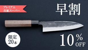 プレミアムモデル(青紙スーパー)は、高知県を代表する名工のみに贈られる「土佐の匠」受賞した、土佐でも呼び声高い鍛造技術を持つ職人が製造します。青紙スーパーは均一な鍛造が特に難しいとされており、これだけ高品質な青紙スーパーの鍛造包丁を造れる職人がまたいつ現れるか分かりません。このプレミアムモデルは、この最高の職人が鍛造から刃付け、柄付けまで一人で行っている、特別なモデルです。