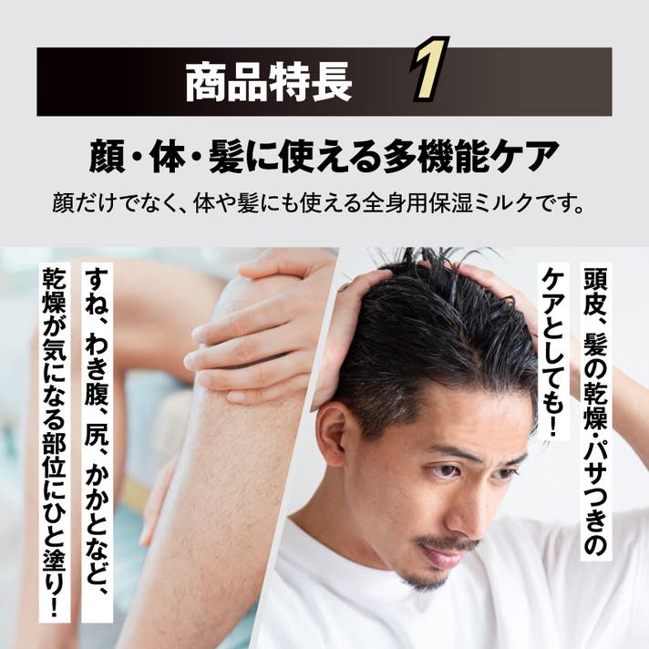 SPEEDIA オールインワンミルクは、「顔・体・髪」にこれ1本でOKの“男の相棒”。