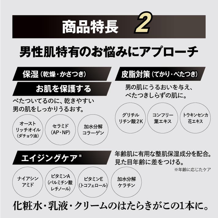 など、男性の肌悩みにこれ1本で立ち向かいます。