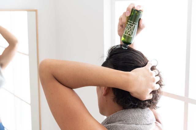 2.頭頂部に直接塗布し、頭皮全体にまんべんなくいきわたらせます。