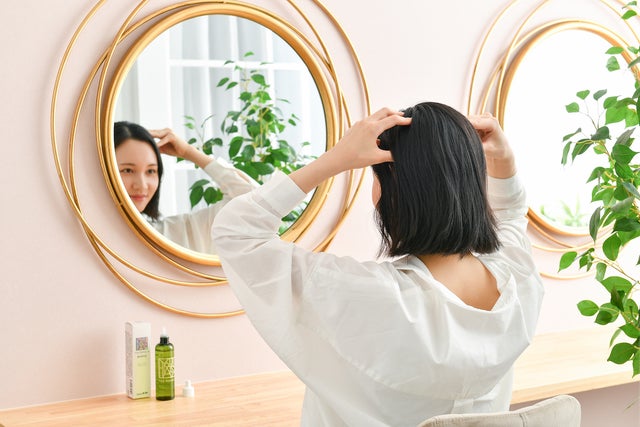 朝晩1 日2 回、頭皮になじませ頭部全体をやさしくマッサージ。