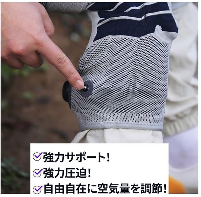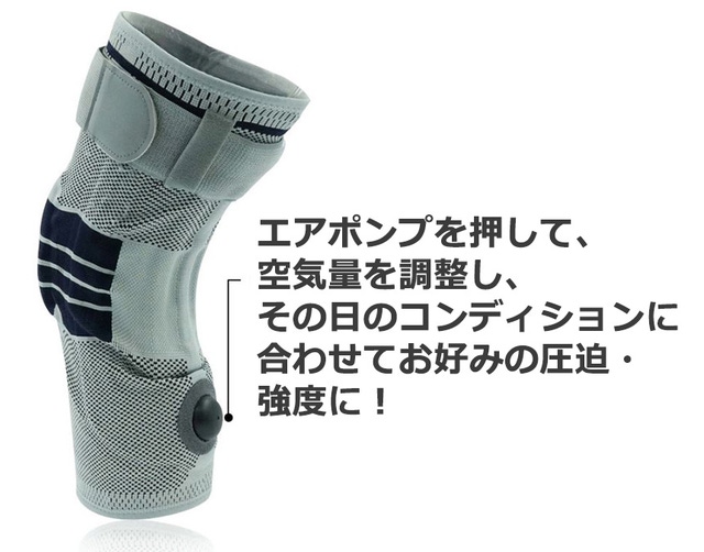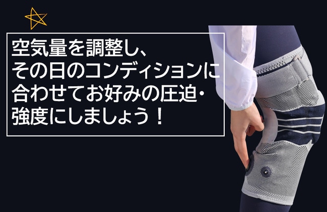 膝のコンディションは毎日違いますよね。空気量を調整し、その日のコンディションに合わせてお好みの圧迫・強度にしましょう!