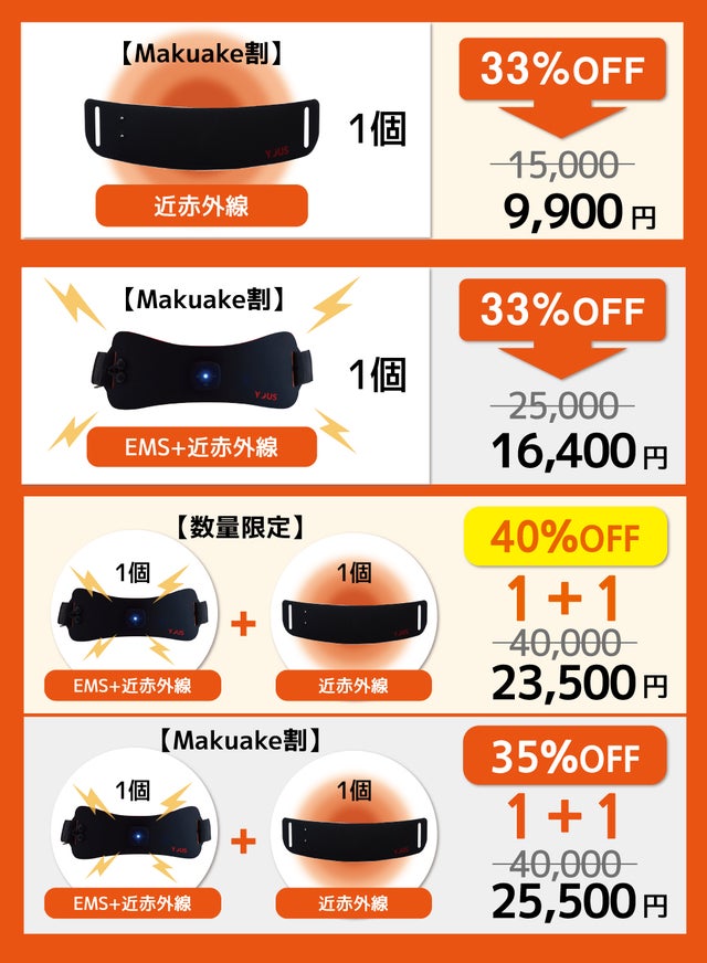 【超早割】35%OFFユースEMS近赤外線温熱ベルト1個 +近赤外線温熱ベルト1個