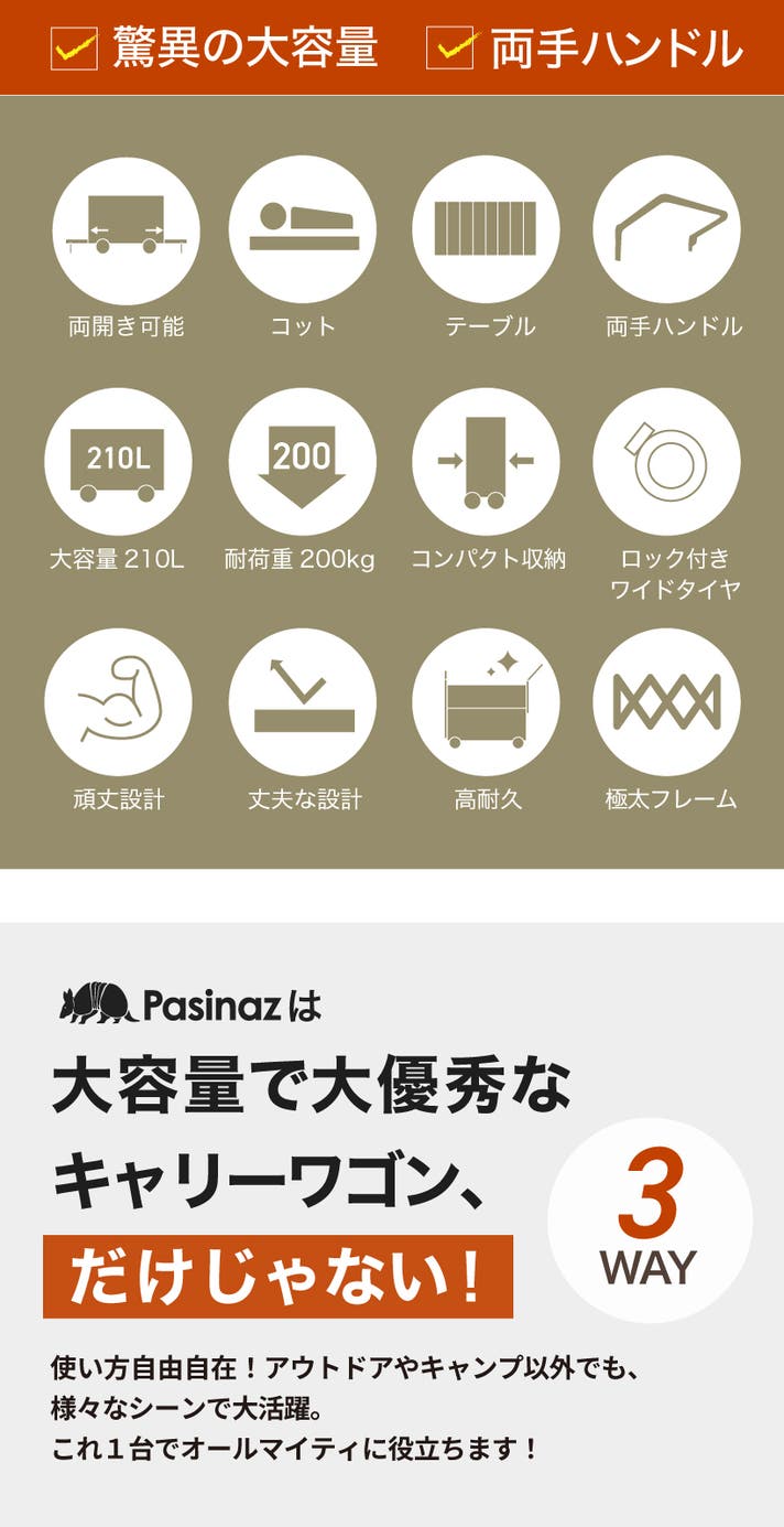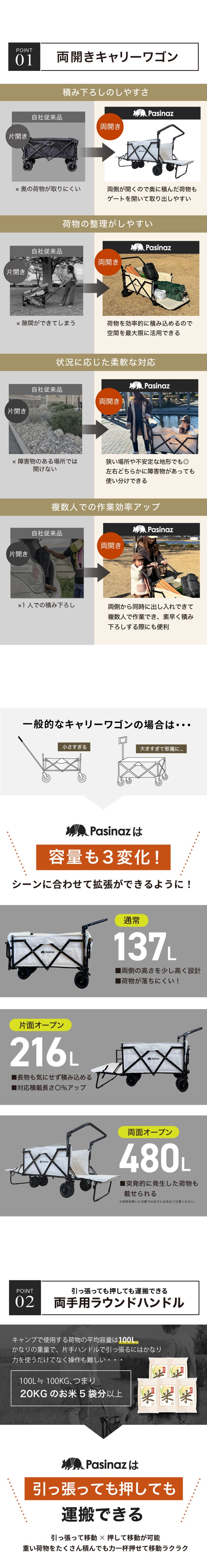 - 【大容量480Lワゴン】両開きできるから荷物もだしやすい!