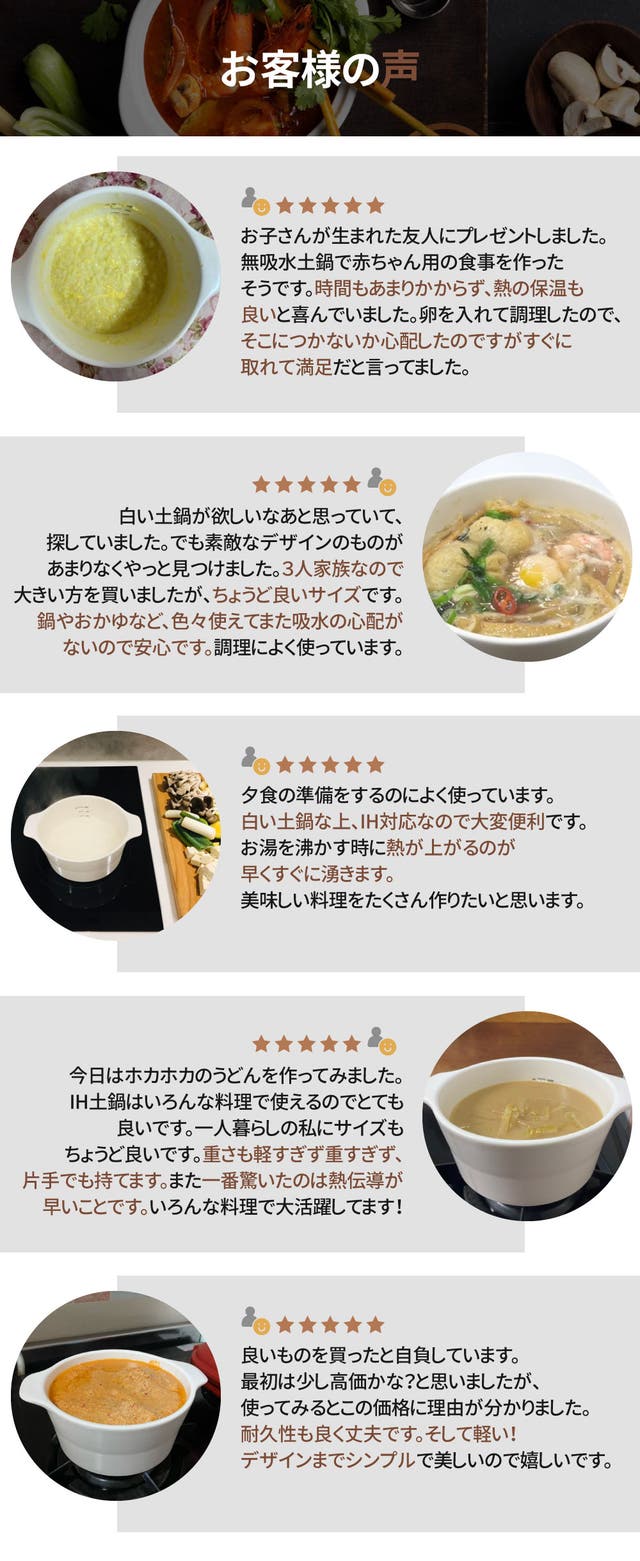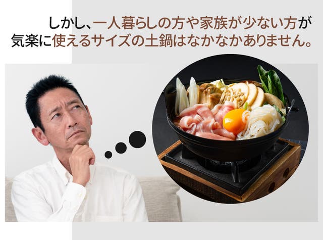 この商品を輸入しようと思った理由:土鍋は日本の冬には欠かせない調理器具です。ただ一人住まいで使いやすい土鍋はなかなかなかったのが現状でした。そういう時に1人でも使えてIHでも使えるというこの製品を見つけて感動しました。多くの皆様にもぜひ紹介したいと思いました。
