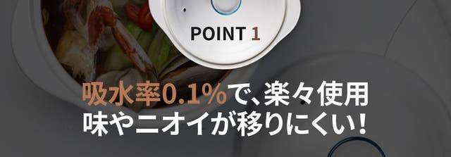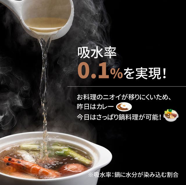 吸水率がほぼ0のため、鍋へ食材や洗剤などが染みる心配が少ないです。
