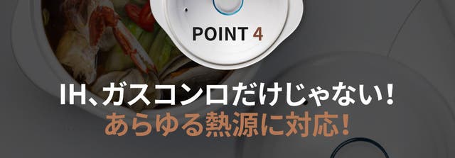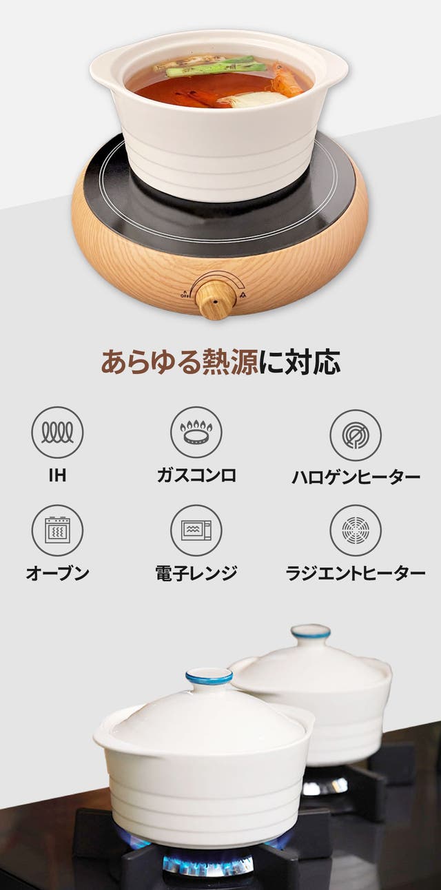 IH土鍋『YOZL』はIHクッキングヒーターはもちろんのこと、ガスコンロやエンクロヒーター、ラジエントヒーター、ハロゲンヒーター、シーズーヒーターなどのあらゆる熱源に対応します。