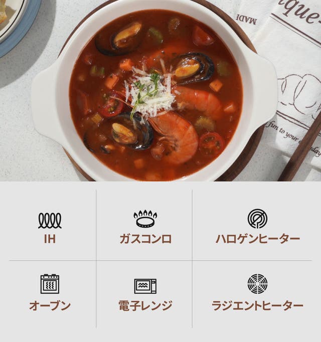 - オールセラミック製で耐久性・熱保存率に優れる!炒める・煮込む・蒸し焼き・オーブン焼きまで対応!