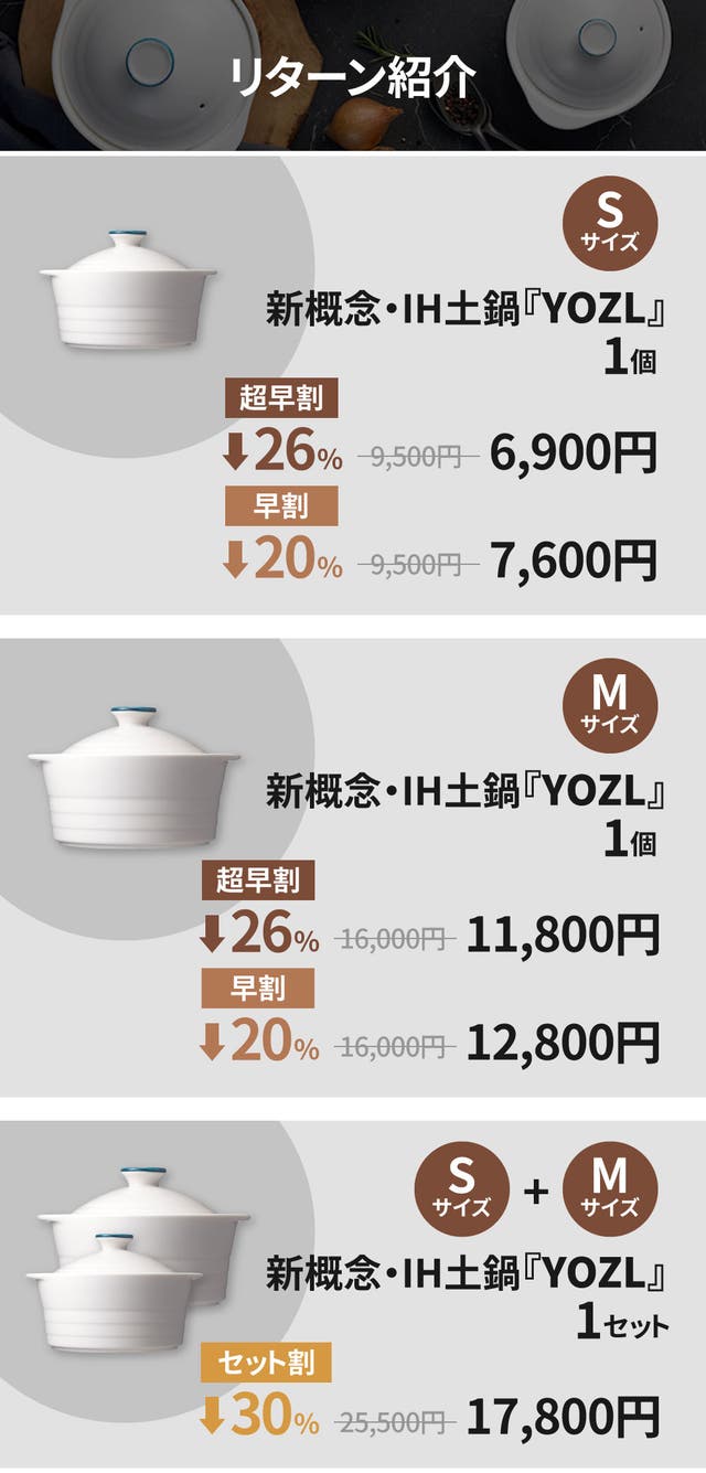 ・IH土鍋『YOZL』Sサイズ×1個+Mサイズ×1個